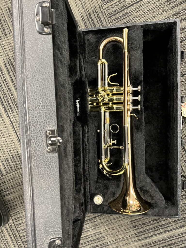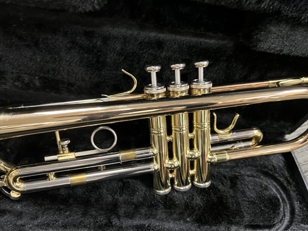 This tri-color trumpet is in great shape both operational and cosmetically. Excellent condition. No dents or dings. Valves and slide all working smooth. Includes mouthpiece and hard shell case.